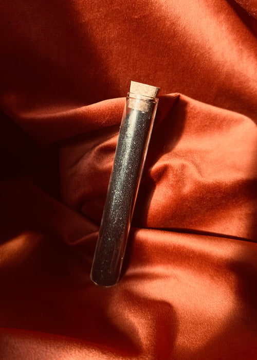 Crafted in sacred ritual with Greek holy water, double-boiled salt water, honey locust thorns, and coal gathered from the mountains of Harlan, Kentucky. Each vial carries onyx, juniper, pepper, alkanet, and Vesta fire for unparalleled protection.